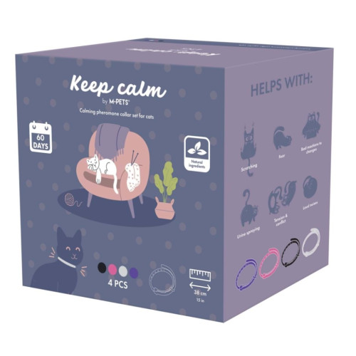 M-PETS KEEP CALM SAKİNLEŞTİRİCİ KEDİ TASMASI – 4’LÜ MIX RENK
